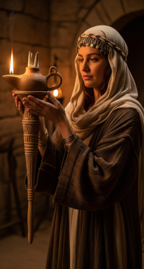 25:1 “At that time, the kingdom from heaven will be comparable to ten bridesmaids who took their oil lamps and went out to meet the groom. 2 Now five of them were foolish, and five were wise, 3 because when the foolish ones took their lamps, they didn’t take any oil with them. 4 But the wise ones took flasks of oil with their lamps. 5 Since the groom was late, all of them became sleepy and lay down. 6 But at midnight there came a shout: ‘The groom is here! Come out to meet him!’ 7 Then all the bridesmaids woke up and got their lamps ready.