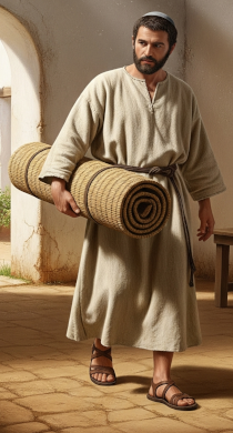 Luke 5:17-26. Jesus heals a man brought on his sleeping mat by four friends.